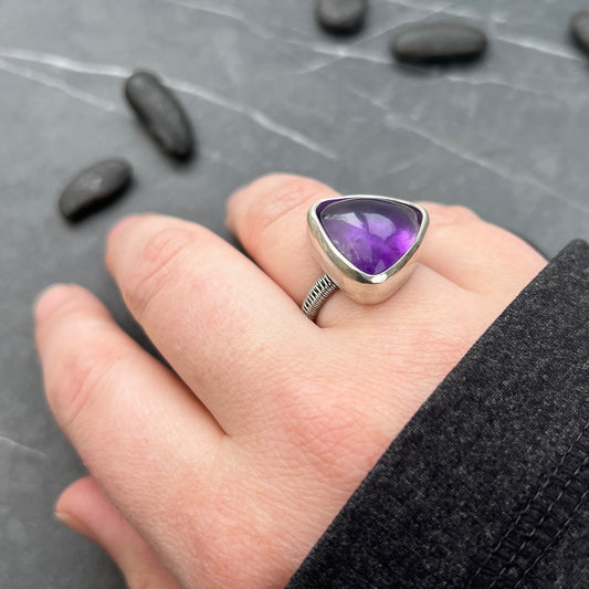 Triangular Amethyst Ring with Woven Band US8.5