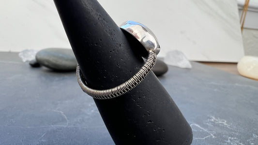 Oval Moonstone Sterling Silver Ring with Woven Band US8