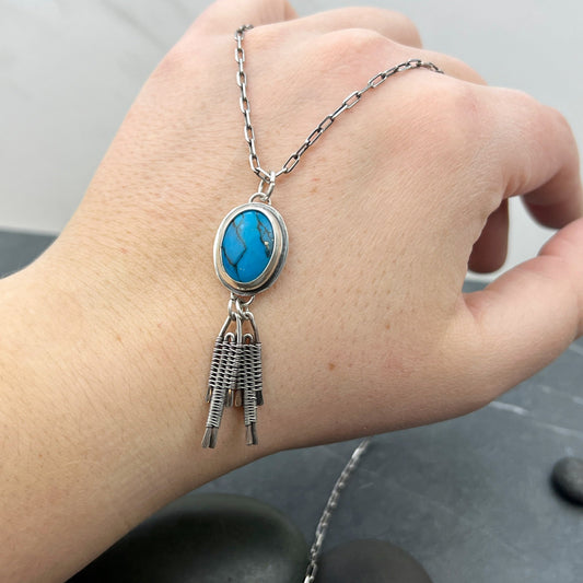 Elegant Swirly Silver Turquoise Pendant - Sterling Silver Dryad Pendant