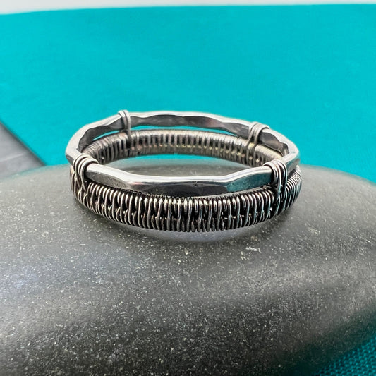 Woven & Hammered Silver Ring - Artisan Statement Piece