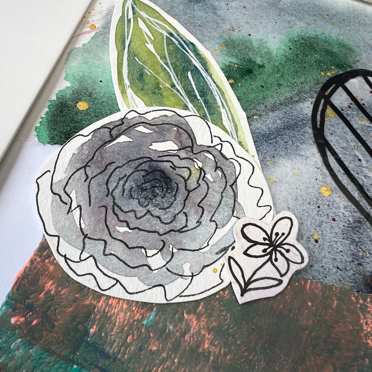 The collage measures 7" x 5" the frame is 11.5" x 9.5".