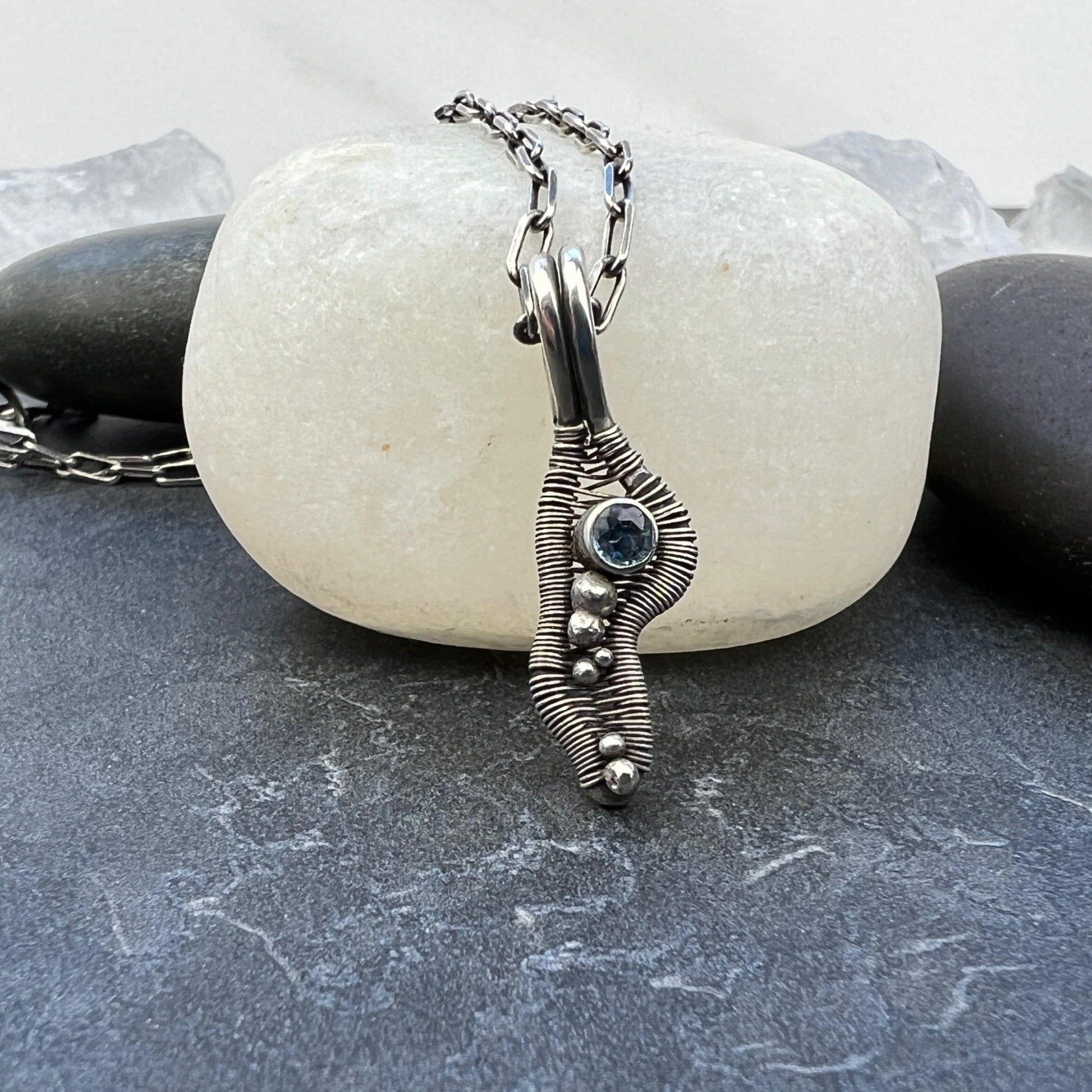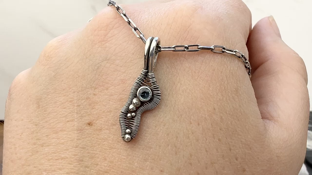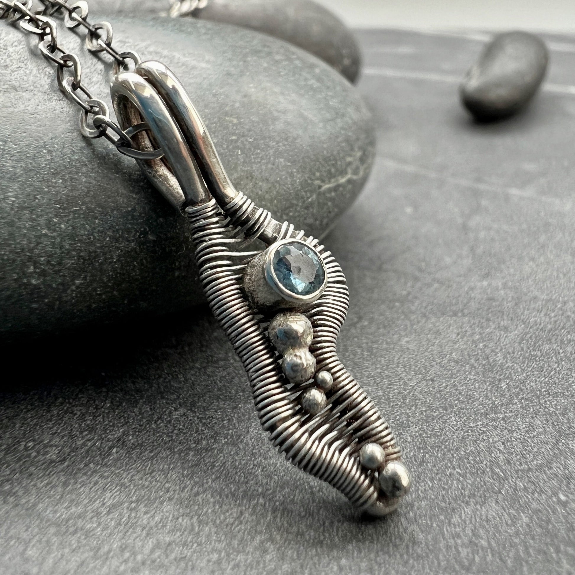 ✔ This pendant is made from .925 sterling silver (base wires and granules) and .999 fine silver (weave), the faceted stone is a sapphire. The pendant has been antiqued (oxidized) and polished to a shine.