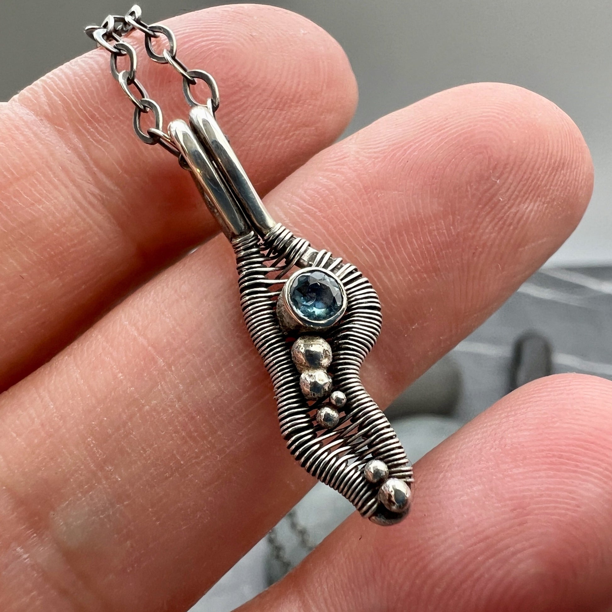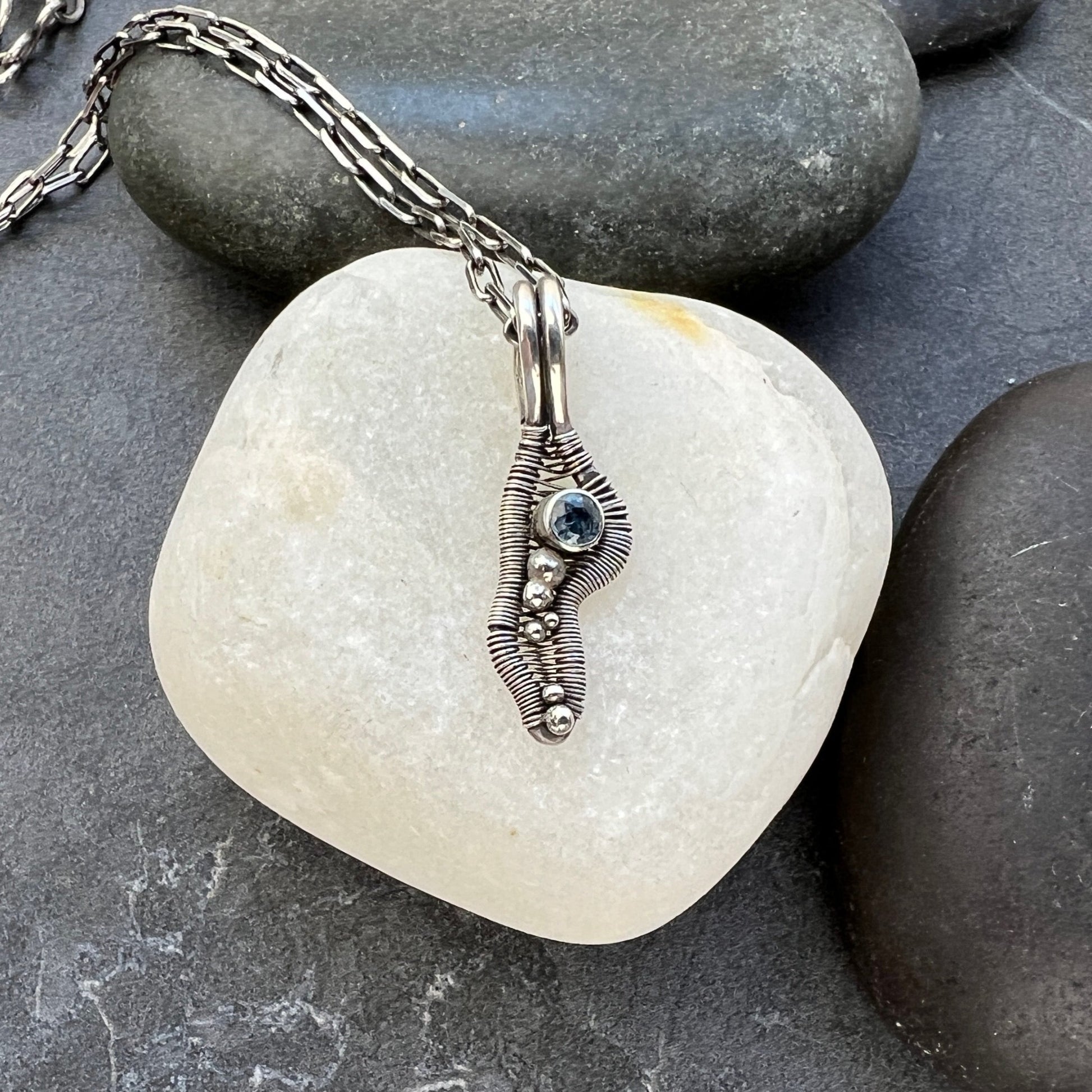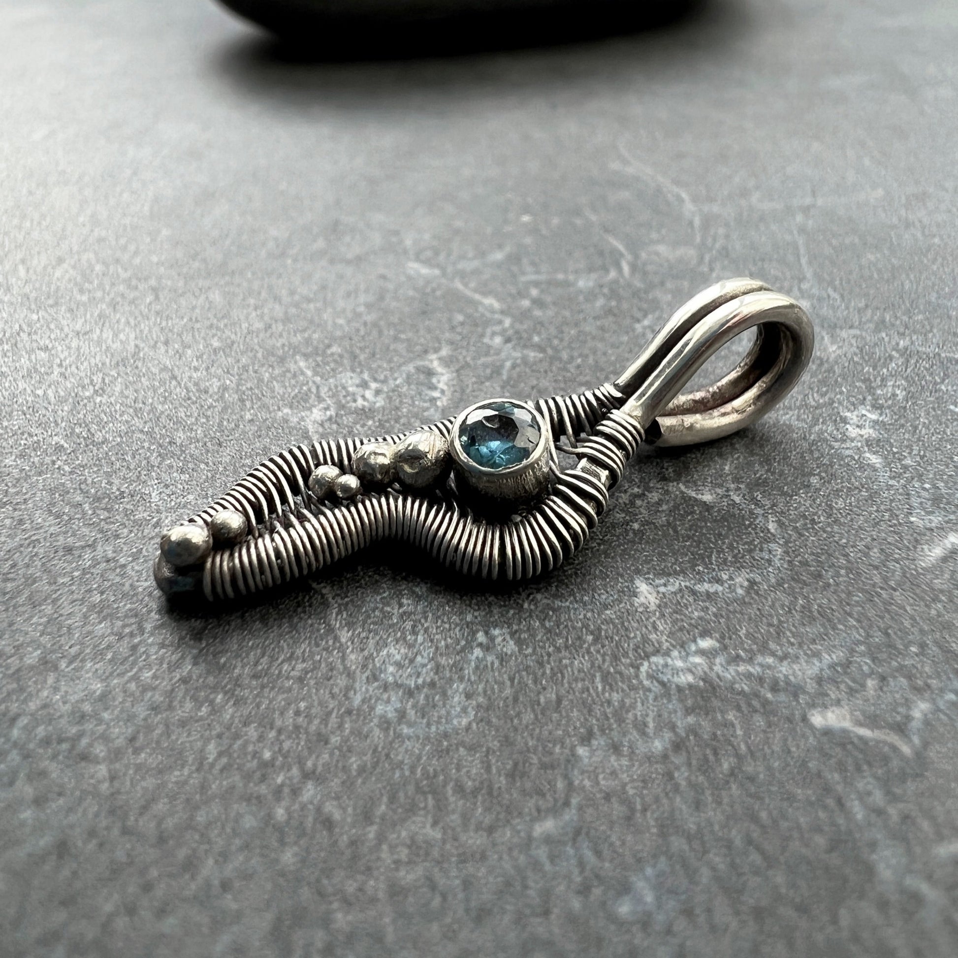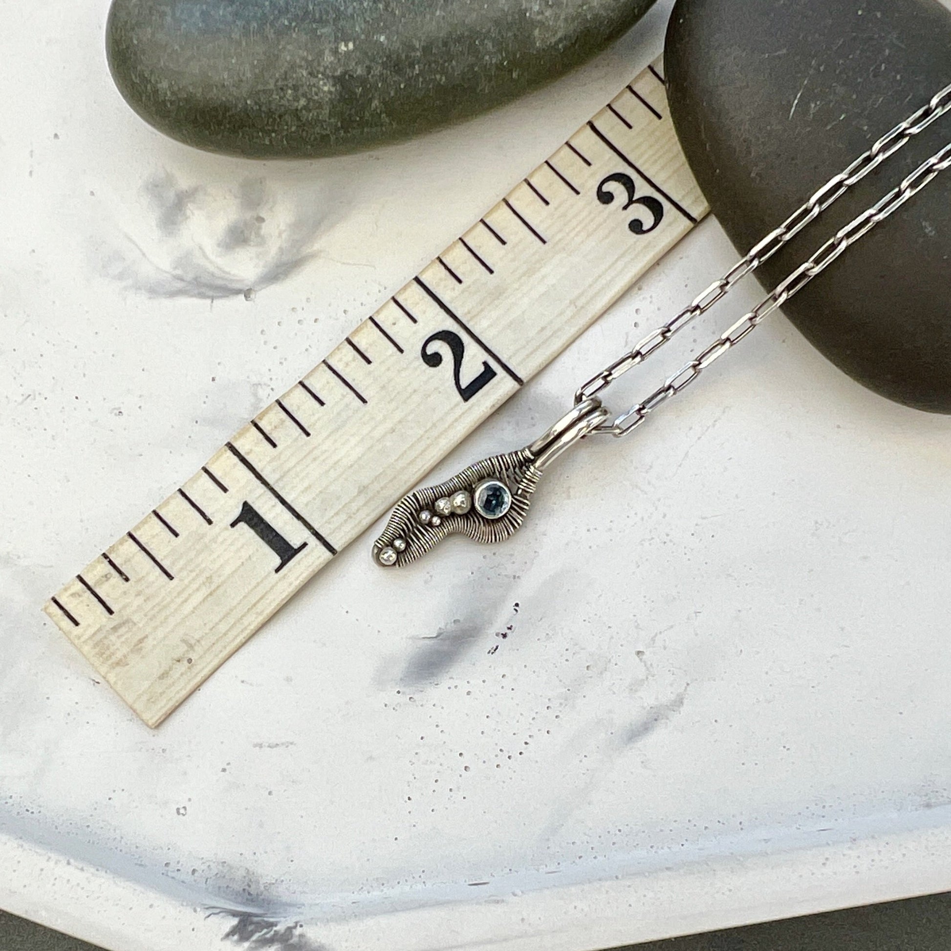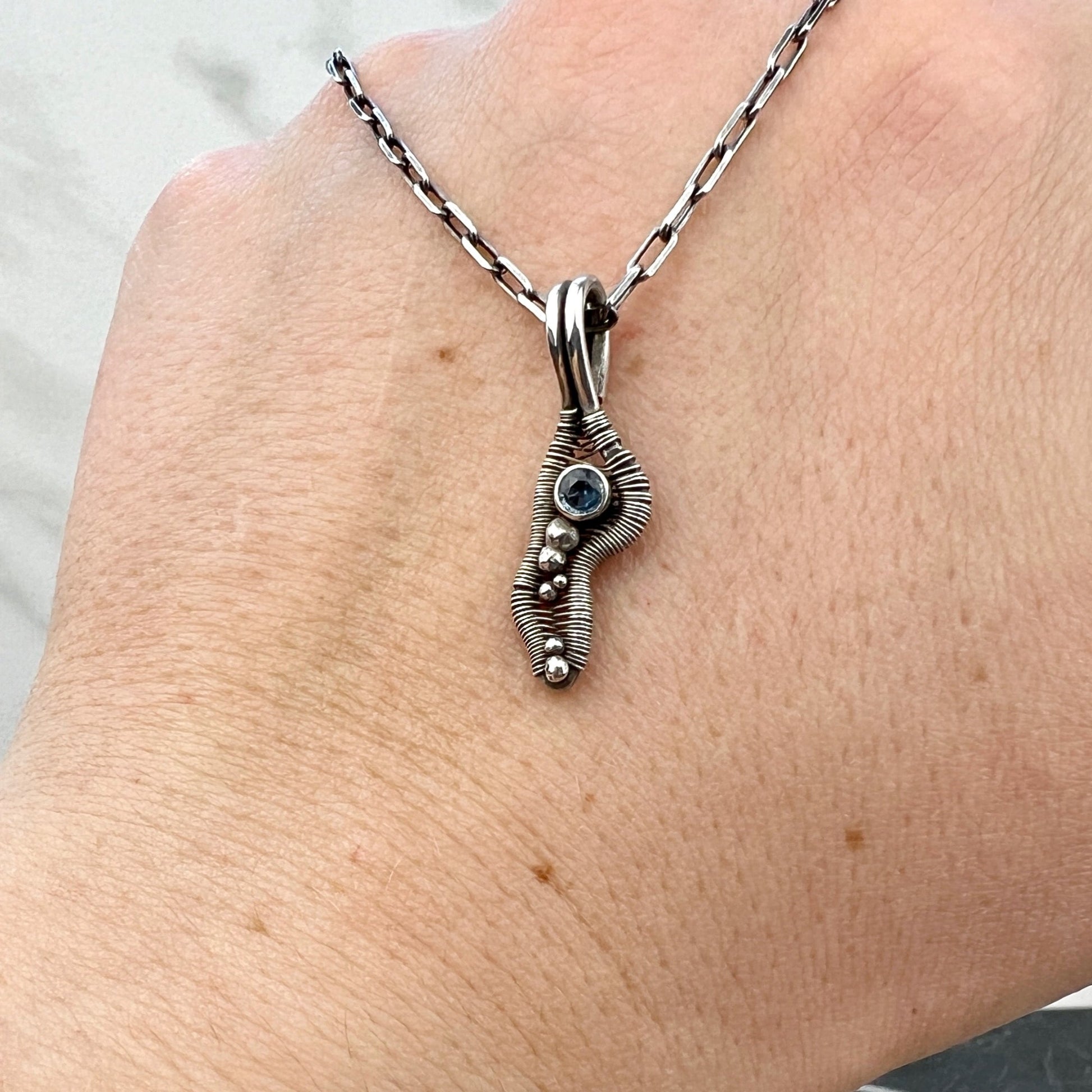 ✔ Introducing the Sapphire Sterling Silver Pendant. Crafted from fused sterling and fine silver, this petite pendant is designed with a delicate wire woven background, accented with a 3mm faceted sapphire and finished with a dainty wire wrapped loop. An exquisite piece of art jewelry, it will add an elegant, sophisticated touch to any outfit. With only 1 inch in height, this pendant is super dainty yet an absolute stunner!