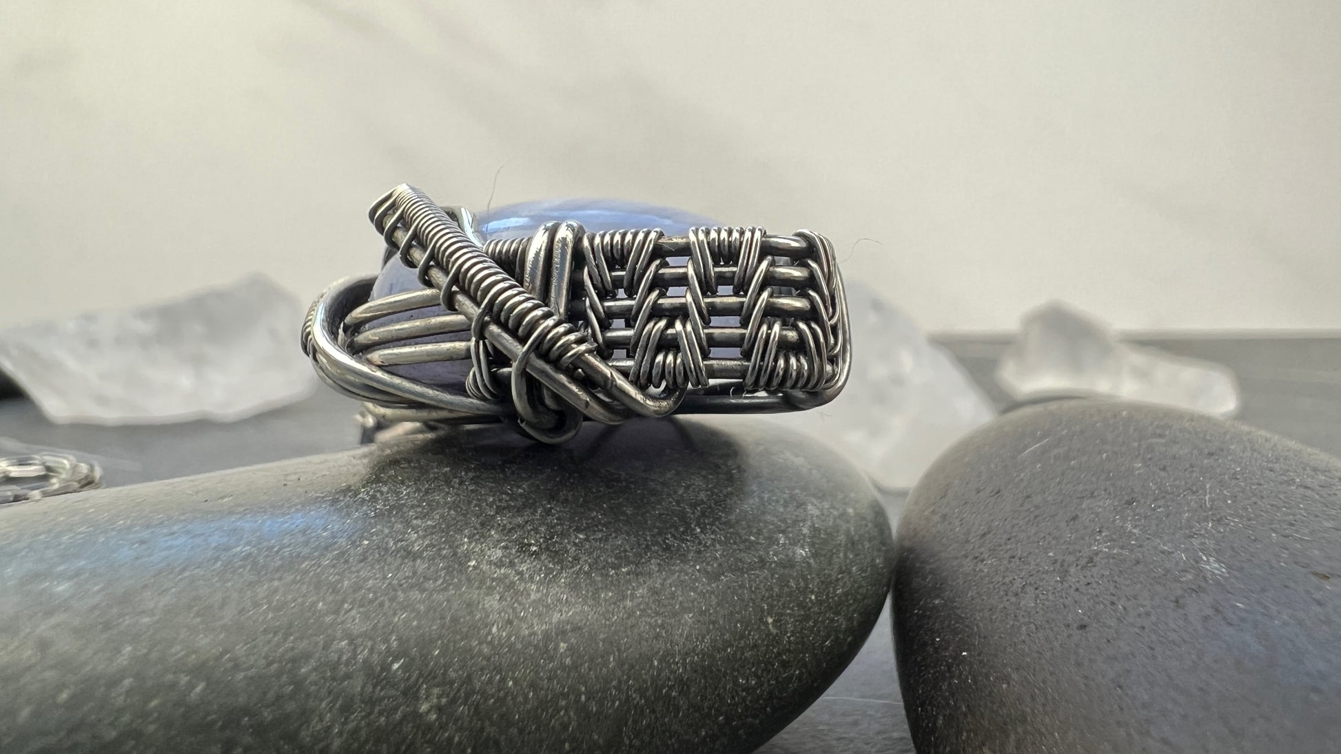 ✔ This pendant is absolutely stunning. A large round blue lace agate is artfully set in sterling silver wire. The lacing in this agate is absolutely stunning and the flowing design of the wire combines this into a beautiful and elegant pendant. A perfect addition to any outfit! Works well as a gift and is certainly a statement.