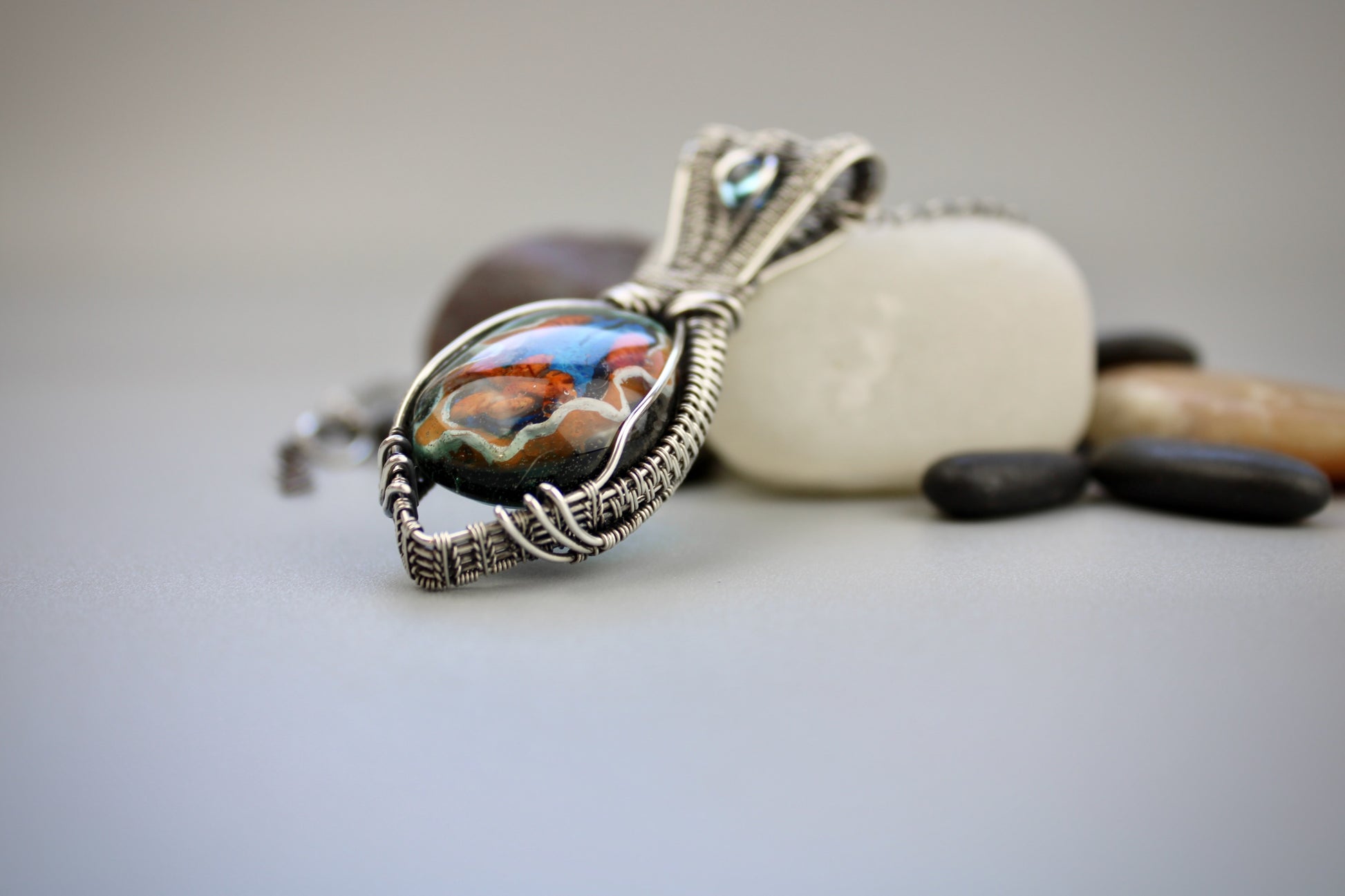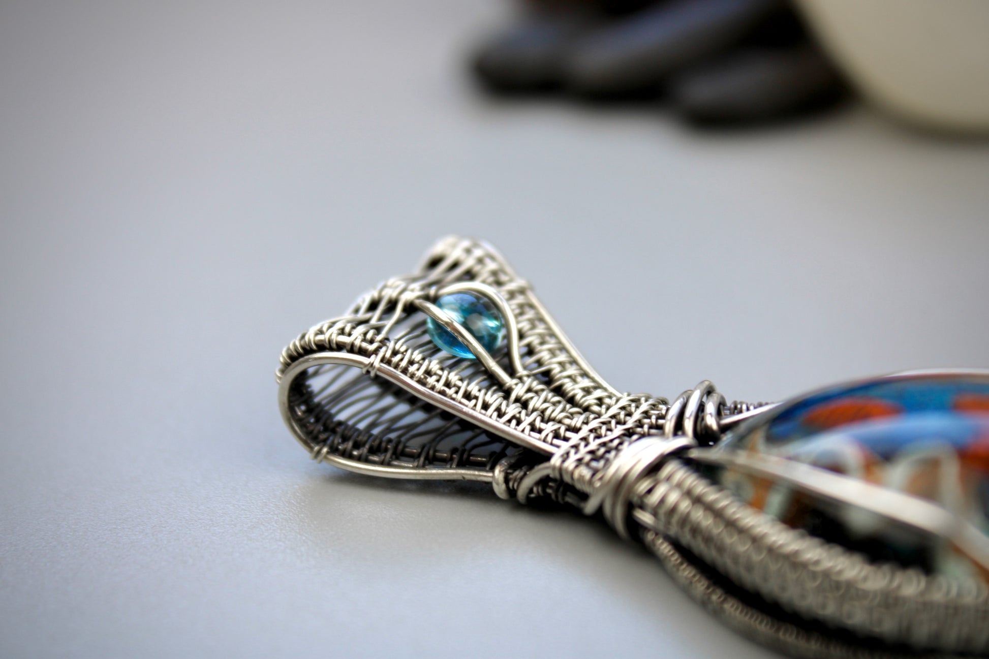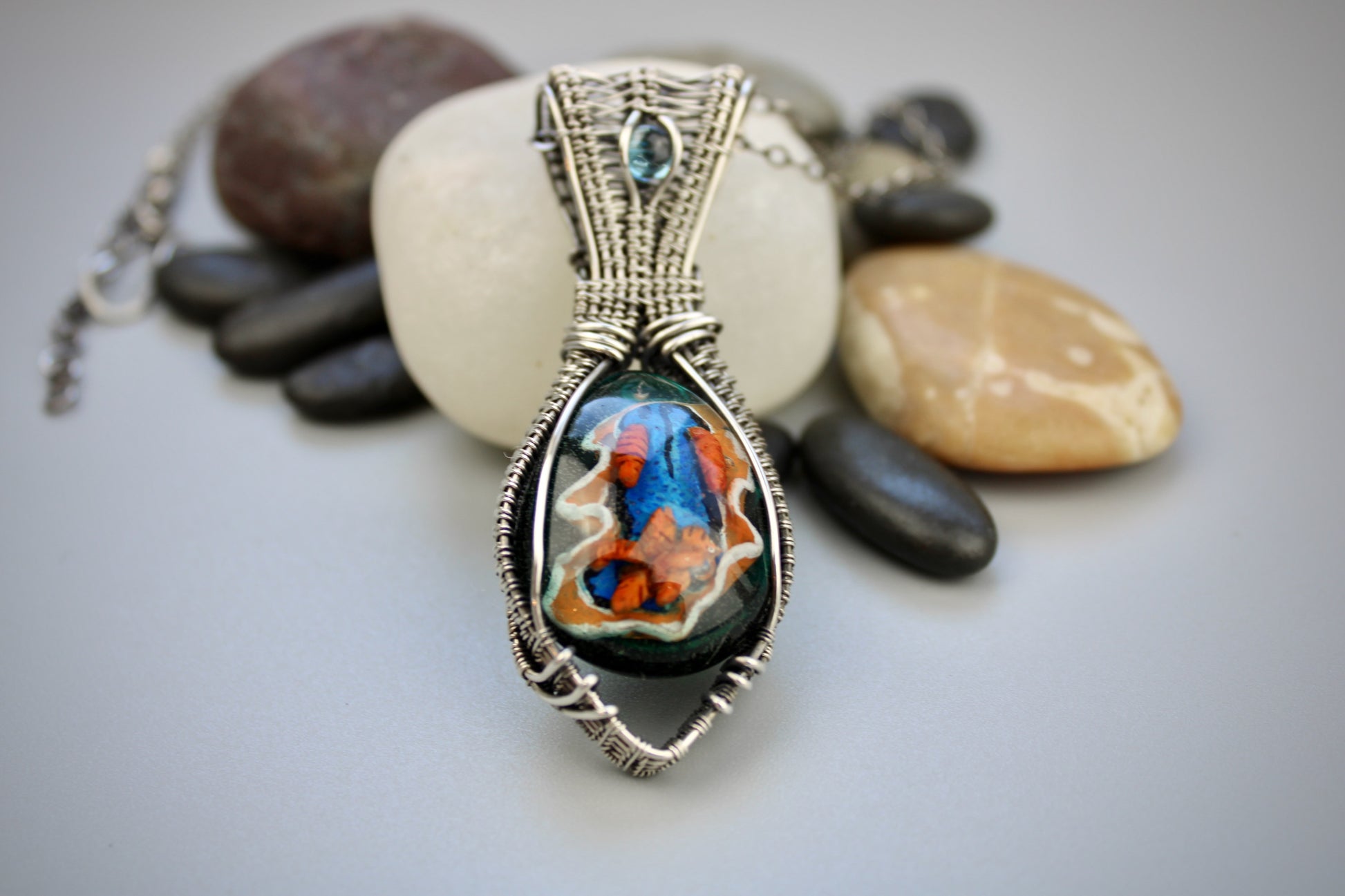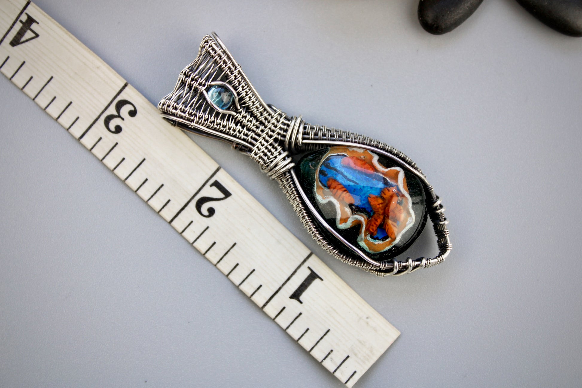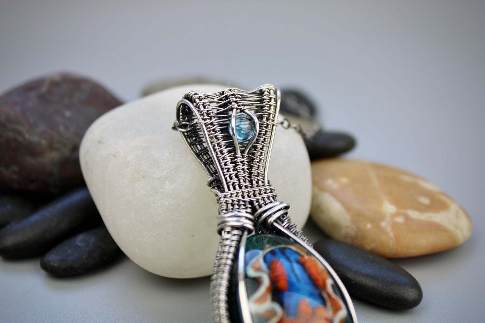 ✔ This pendant is made from .925 sterling silver wire, resin, polymer clay, and Sky Blue Topaz. The silver wire has been antiqued (oxidized) and polished to a shine.