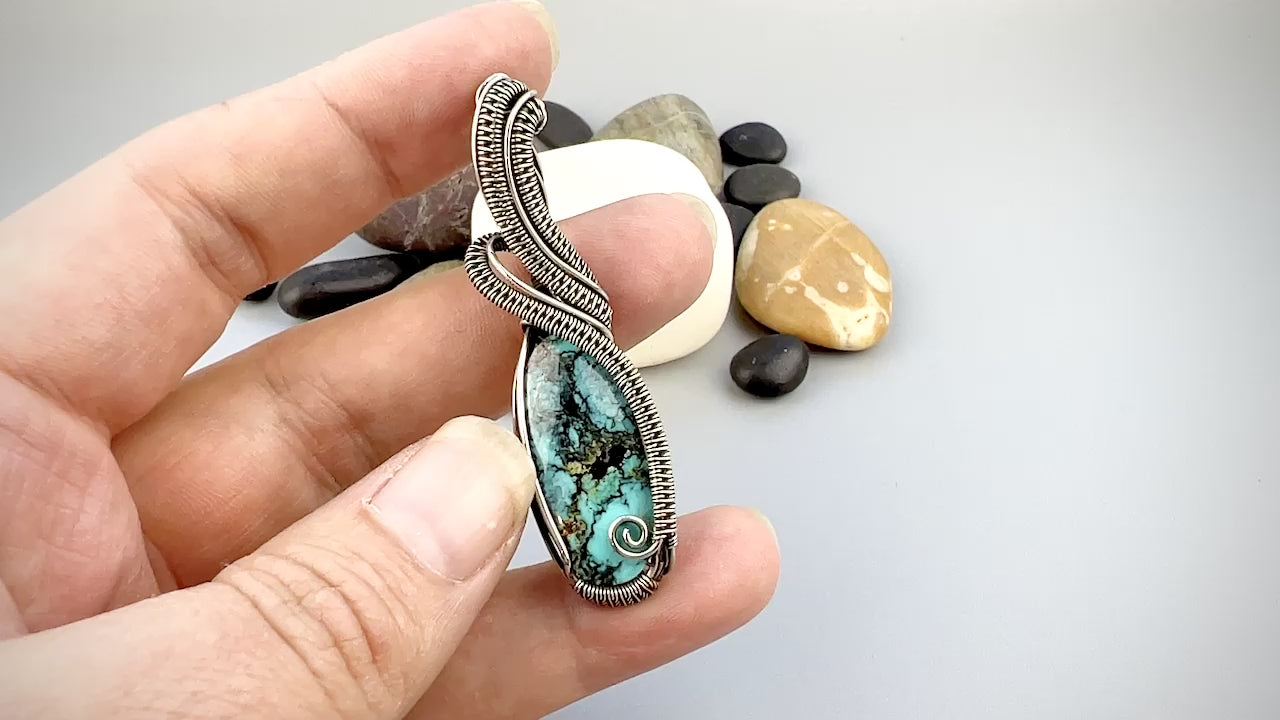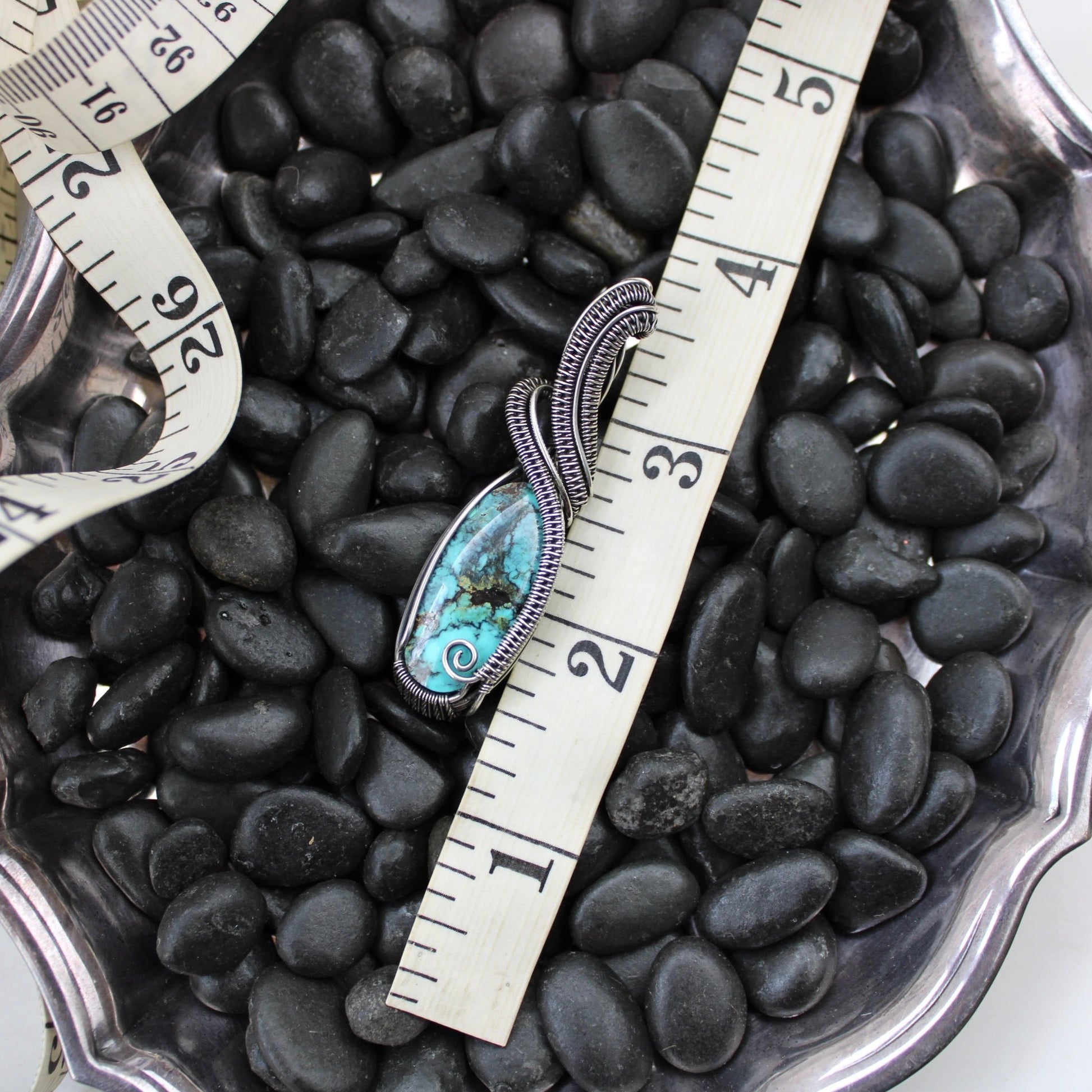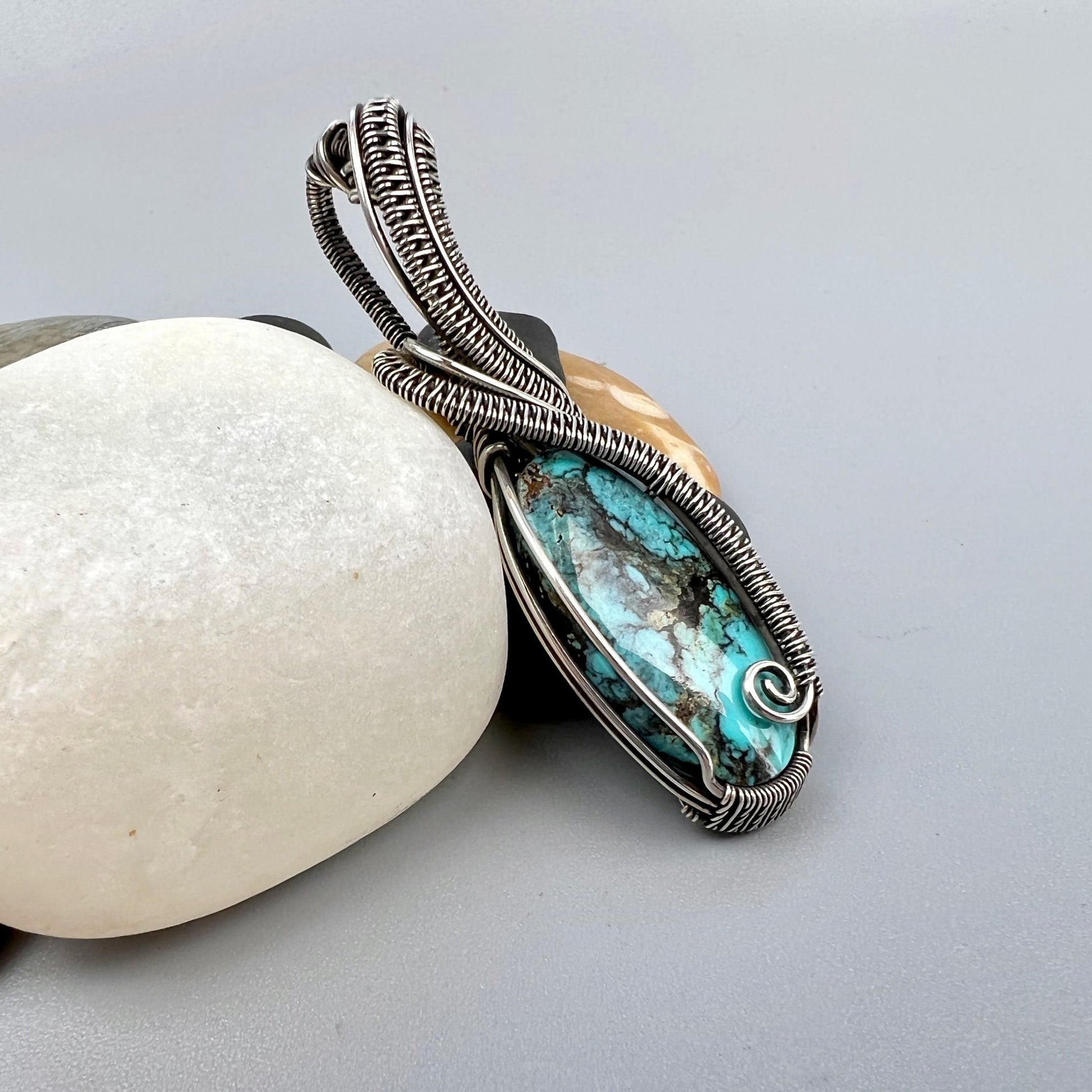 ✔ This pendant is absolutely gorgeous. The stunning wirework elegantly flows around an oval shaped Yungai turquoise. A perfect addition to any outfit! Works perfectly as a gift and is certainly a statement.