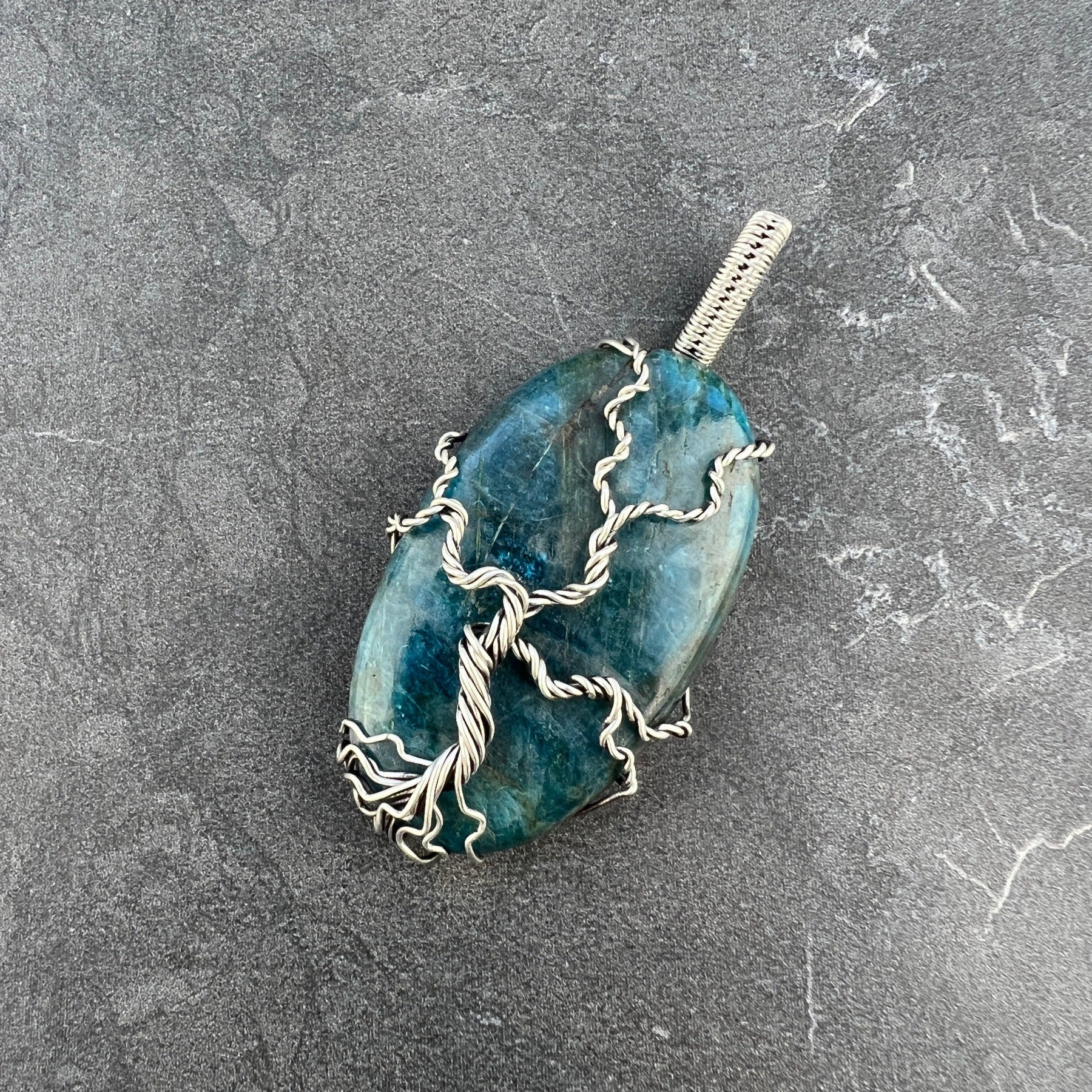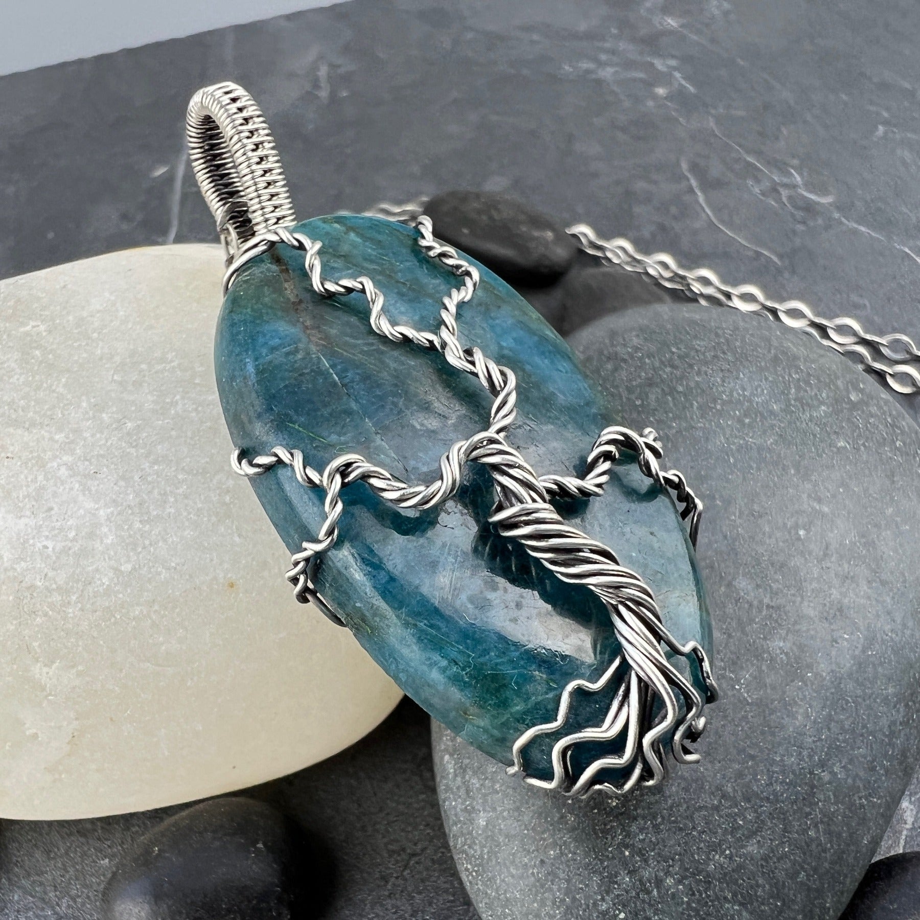 ✔ This pendant is absolutely gorgeous. The silver wire encompasses the apatite forming a tree. The tree of life is a powerful symbol.