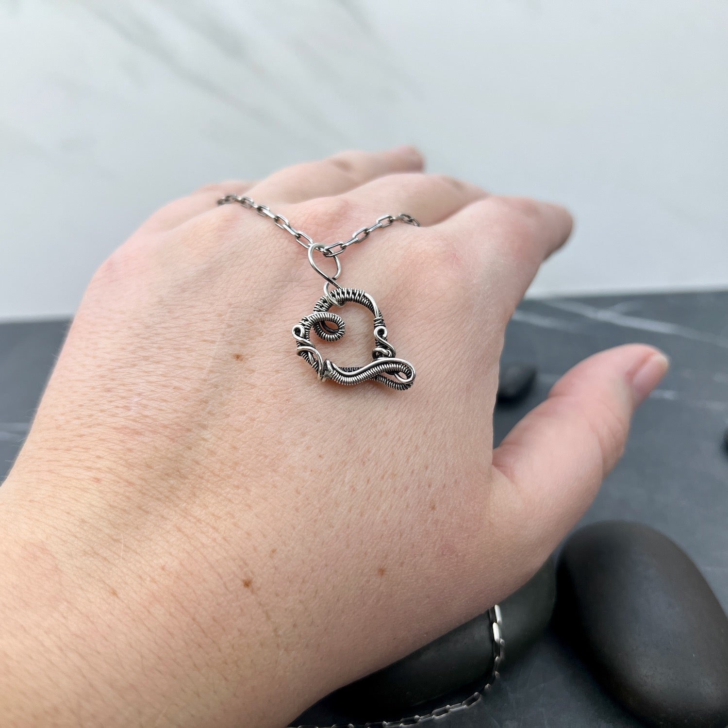 ✔ This heart necklace is swirly, dreamy, and elegant. It's absolutely unique and the woven wire texture is pleasing to the eye. The swirls add just that little romantic touch to make this necklace special. This small heart is a very unique gift. Your loved one will appreciate the intricacy of this pendant