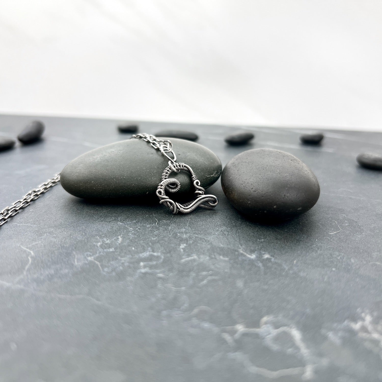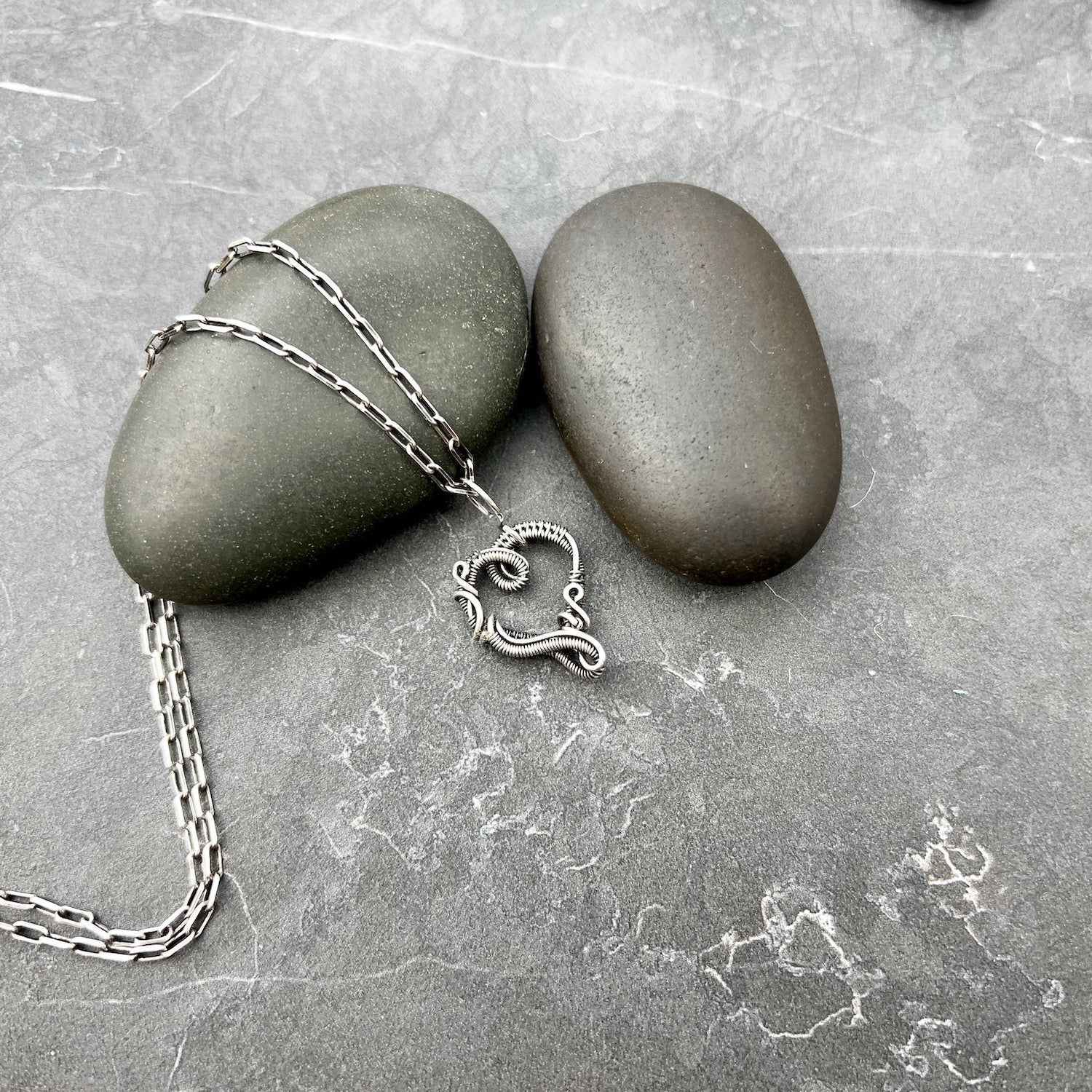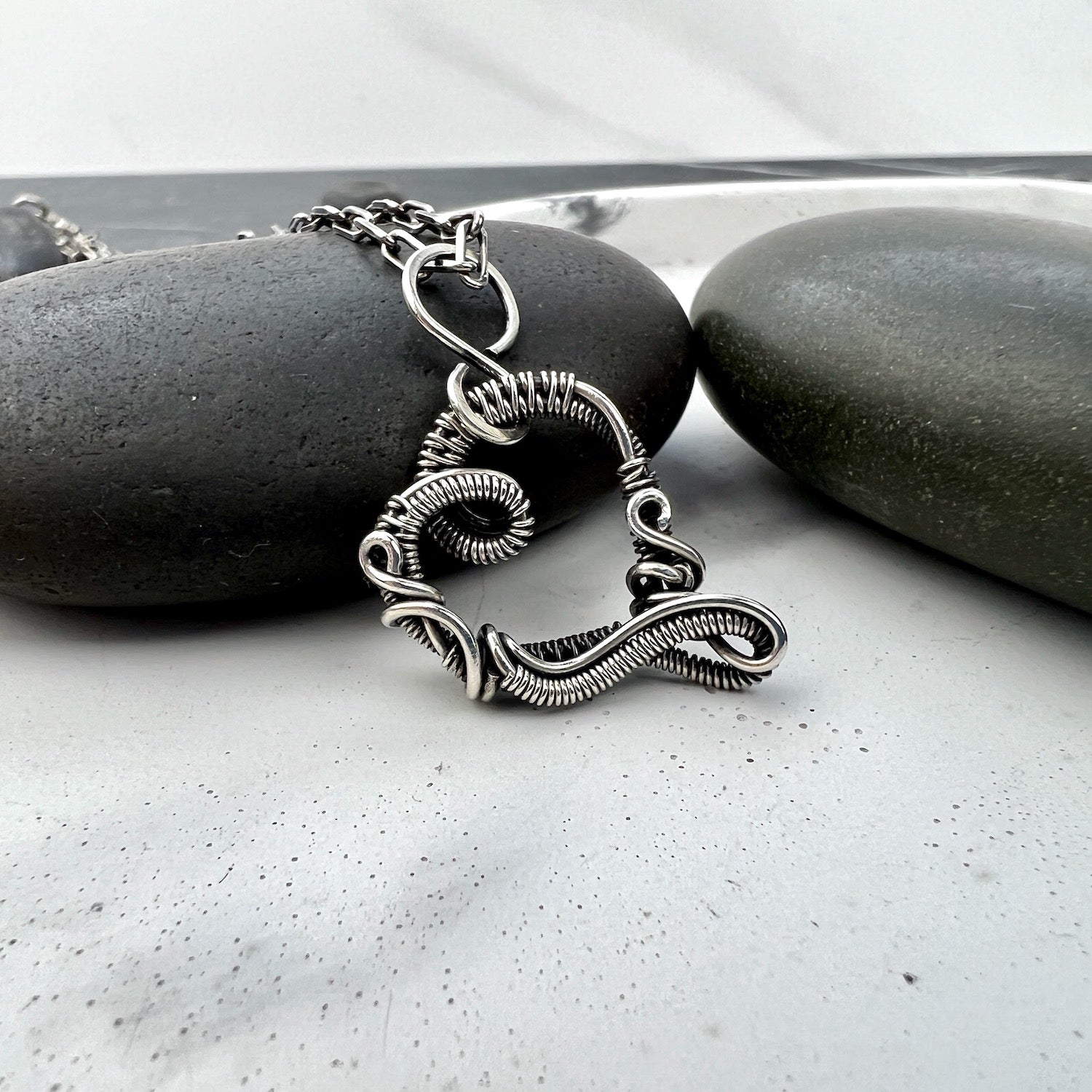 ✔ The heart is made from sterling silver wire. The pendant is antiqued (blackened/oxidized) and then polished to a shine.