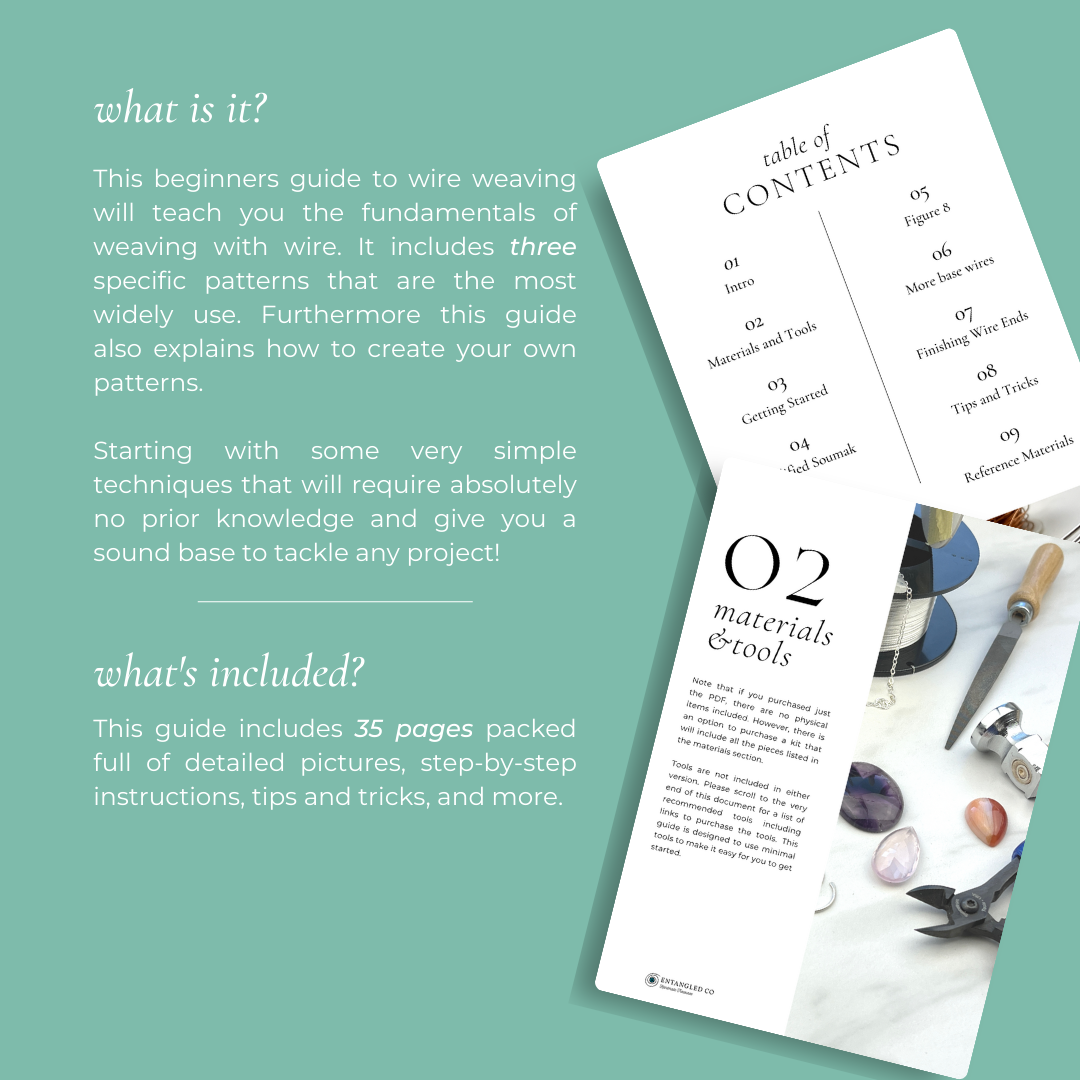 This beginners guide to wire weaving will teach you the fundamentals of weaving with wire. It includes three specific patterns that are the most widely use. Furthermore this guide also explains how to create your own patterns.