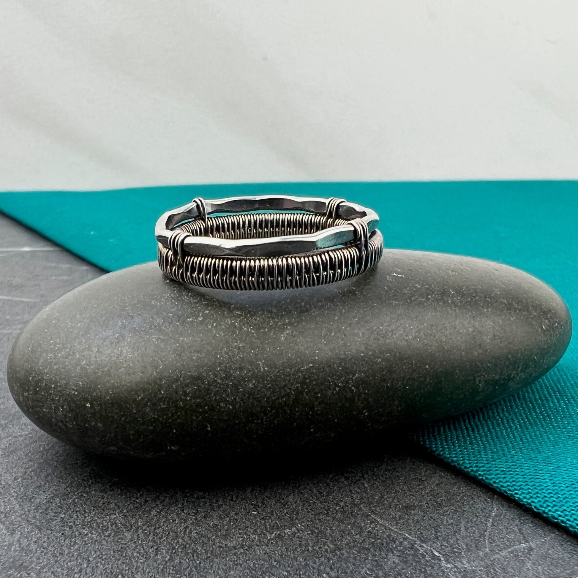 Woven & Hammered Silver Ring - Artisan Statement Piece