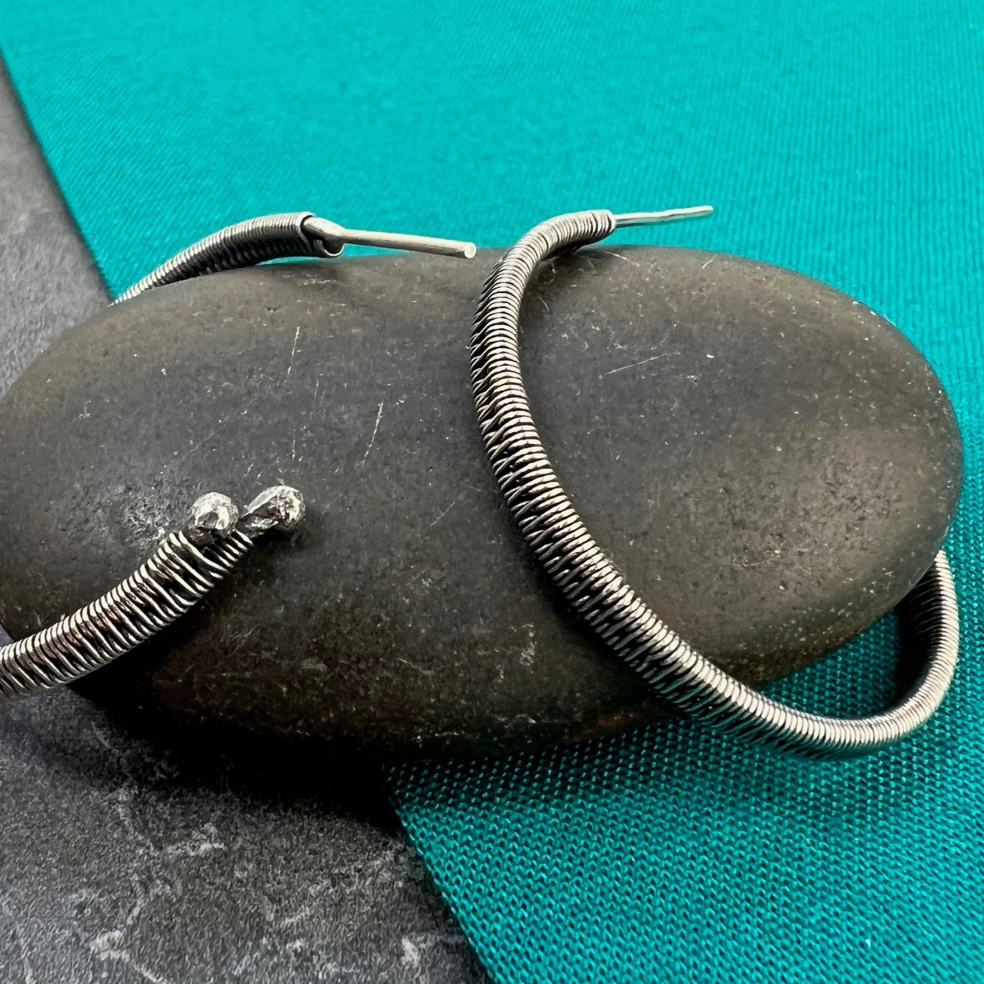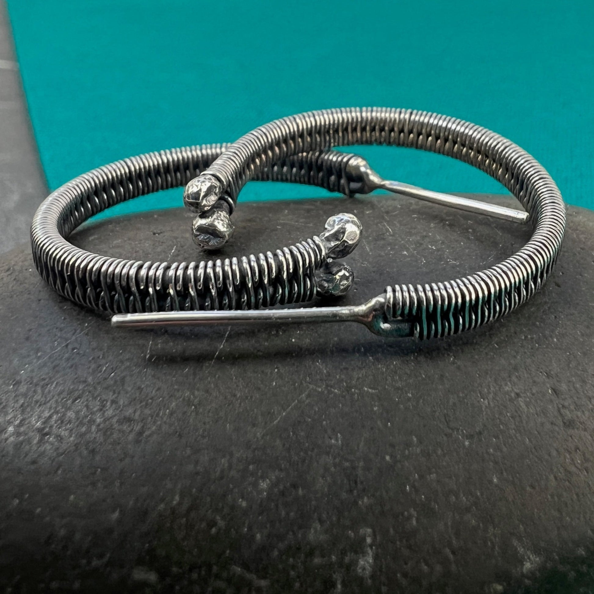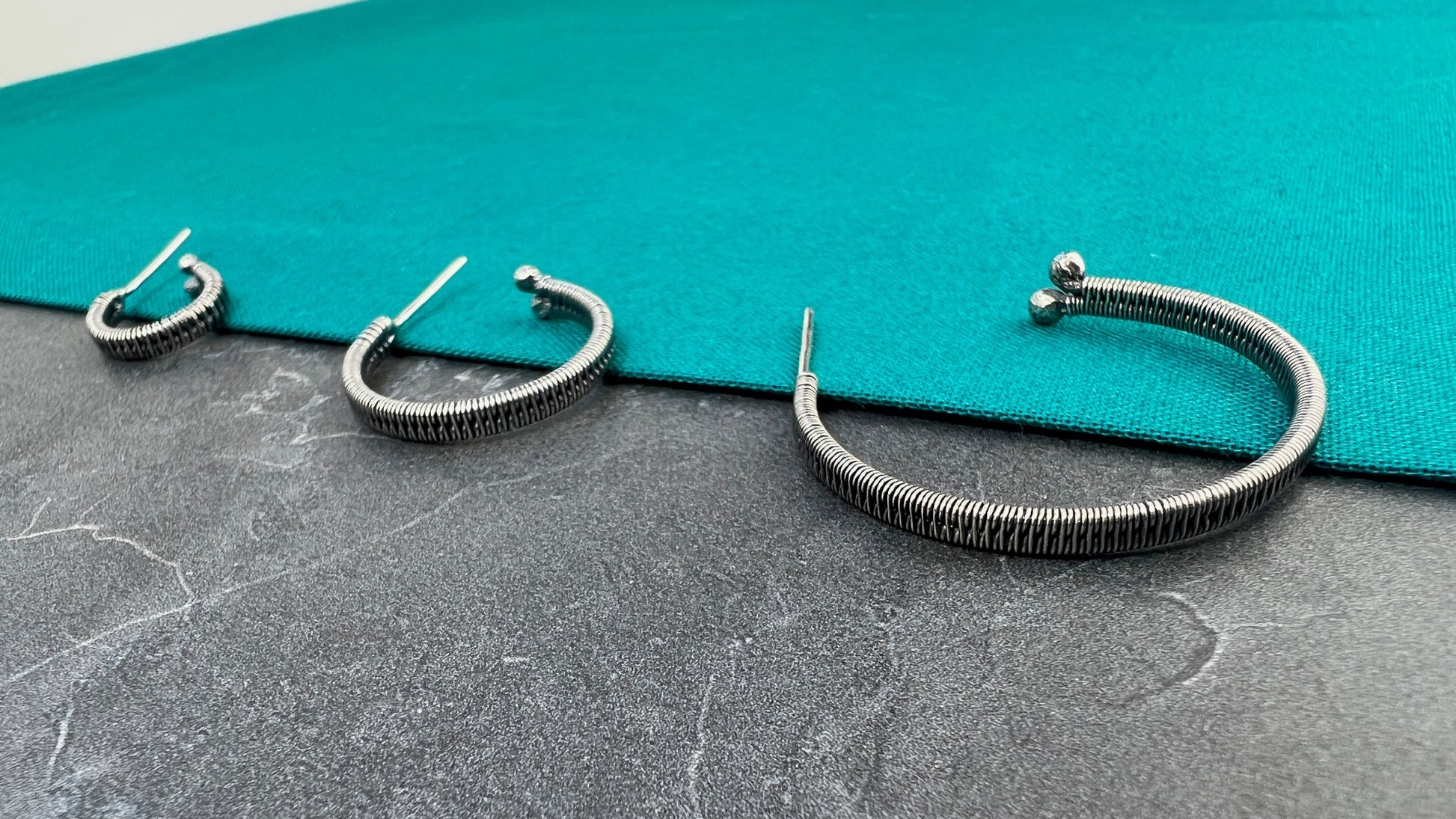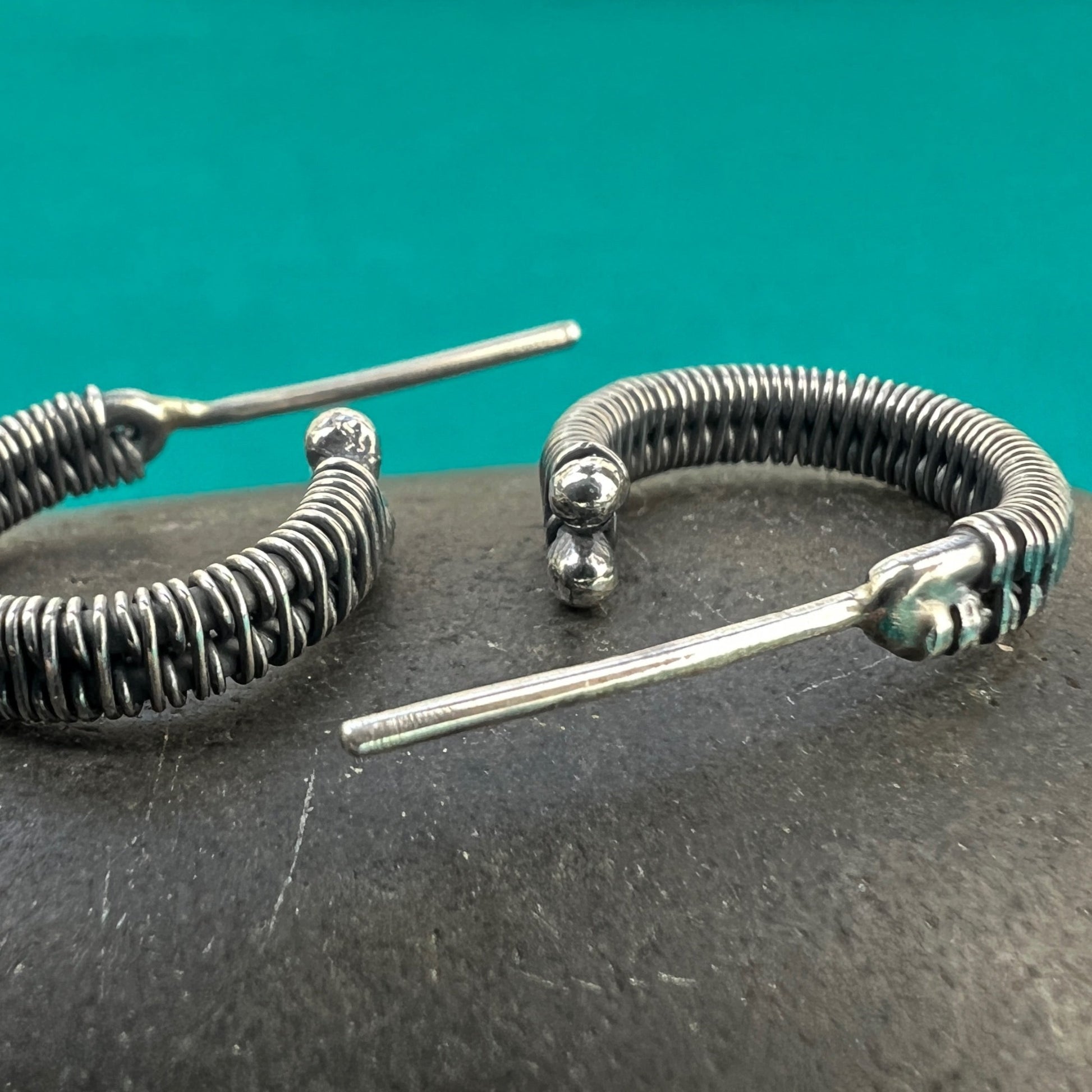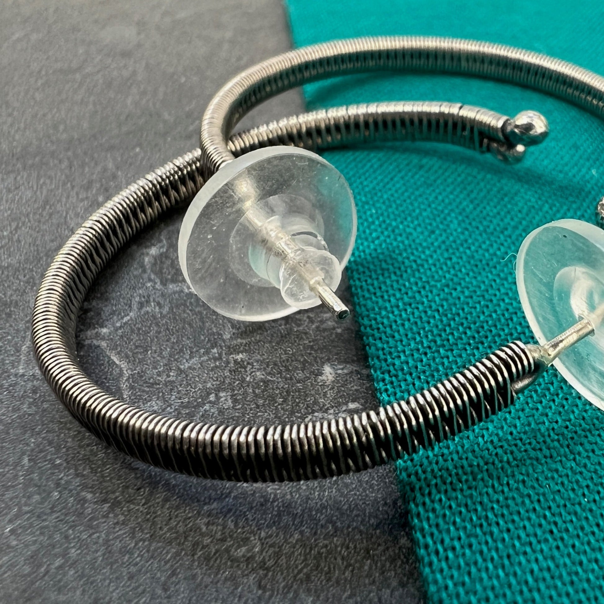 The earrings are oxidized and polished, resulting in a captivating shine that accentuates the intricate wire weaving. With post closures and comfort backings (silicone) included, these earrings offer a comfortable and secure fit.